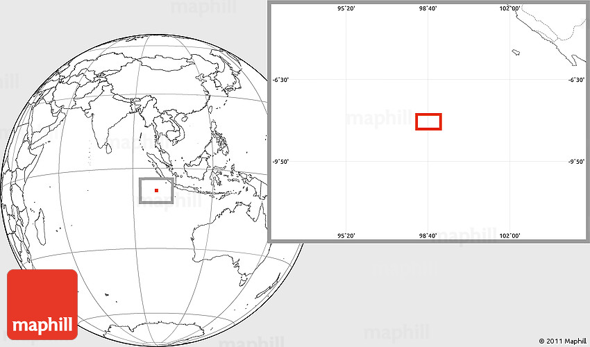 Maphill is a collection of map images. This image combines a blank map with the globe centered on the area around 8° 12' 42" S, 98° 40' 30" E. Use the buttons under the image to switch to different map types.