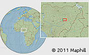 The savanna style location map represents one of several map types and styles available. Look at the area around 9° 36' 8" N, 10° 16' 30" E from different perspectives.