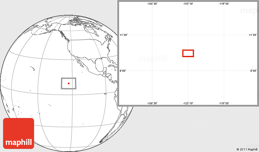 Maphill is a collection of map images. This image combines a blank map with the globe centered on the area around 9° 36' 8" N, 123° 10' 30" W. Use the buttons under the image to switch to different map types.