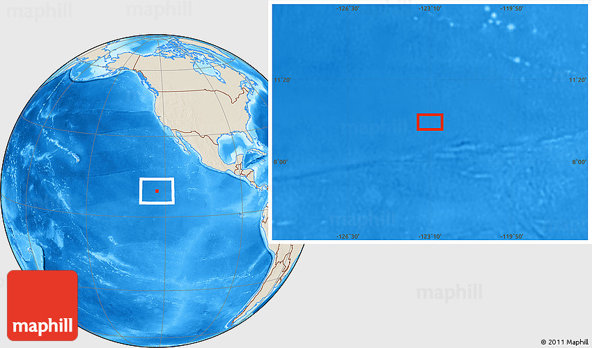 Maphill is a collection of map images. This image combines a shaded relief map with the globe centered on the area around 9° 36' 8" N, 123° 10' 30" W. Use the buttons under the image to switch to different map types.