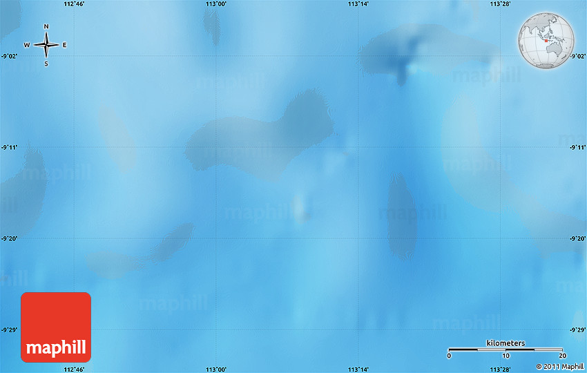 The value of Maphill lies in the possibility to look at the same area from several perspectives. Maphill presents the map of the area around 9° 15' 16" S, 113° 7' 30" E in a wide variety of map types and styles.
