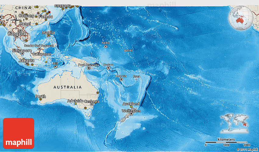 The value of Maphill lies in the possibility to look at the same area from several perspectives. Maphill presents the map of Australia and Oceania in a wide variety of map types and styles.