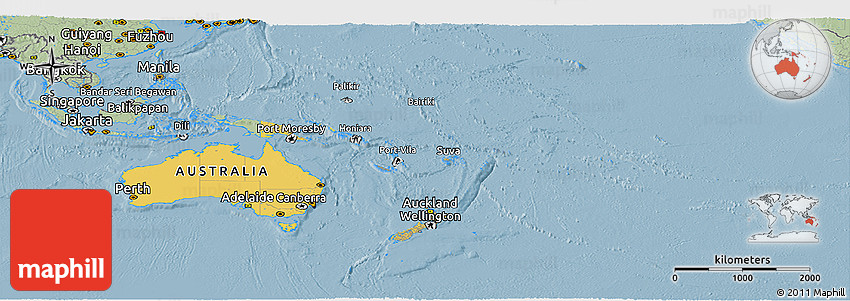 The value of Maphill lies in the possibility to look at the same area from several perspectives. Maphill presents the map of Australia and Oceania in a wide variety of map types and styles.