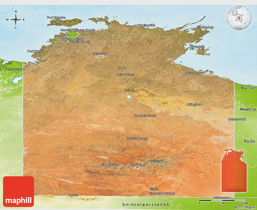 Each map style has its advantages. No map type is the best. The best is that Maphill lets you look at Unincorporated NT from many different perspectives.