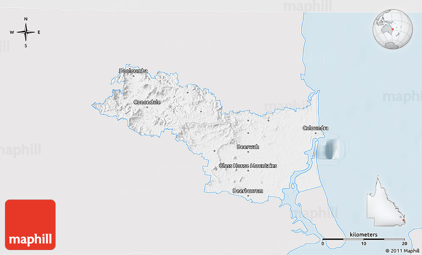Each map type offers different information and each map style is designed for a different purpose. Read about the styles and map projection used in the above map (Silver Style 3D Map of Caloundra, single color outside).