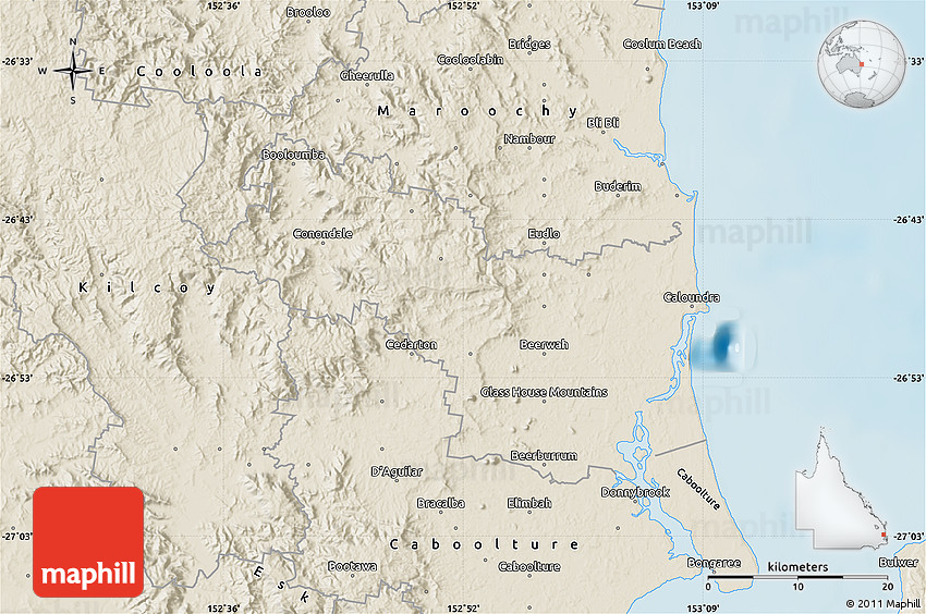 Maphill is a collection of map images. This shaded relief map of Caloundra is one of them. Click on the Detailed button under the image to switch to a more detailed map.