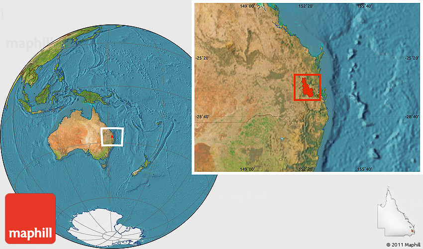 Maphill is a collection of map images. This image combines a satellite map with the globe centered on Esk. Use the buttons under the image to switch to different map types.