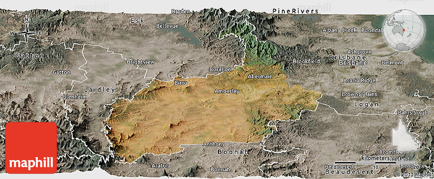 The panoramic satellite map represents one of several map types and styles available. Look at Ipswich, Queensland, Australia from different perspectives.
