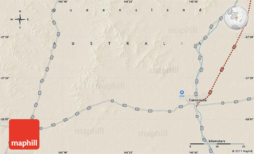 The flat shaded relief map represents one of many map types available. Look at Eulo, Paroo, Queensland, Australia from different perspectives.