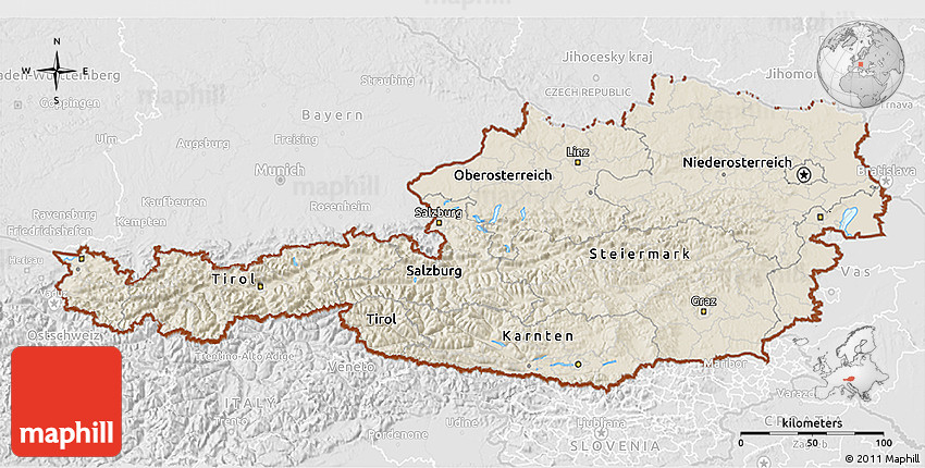 Use the buttons for Facebook, Twitter or Google+ to share a link to this Austria map. Maphill is the largest map gallery on the web. But the number of maps is certainly not the only reason to visit Maphill.