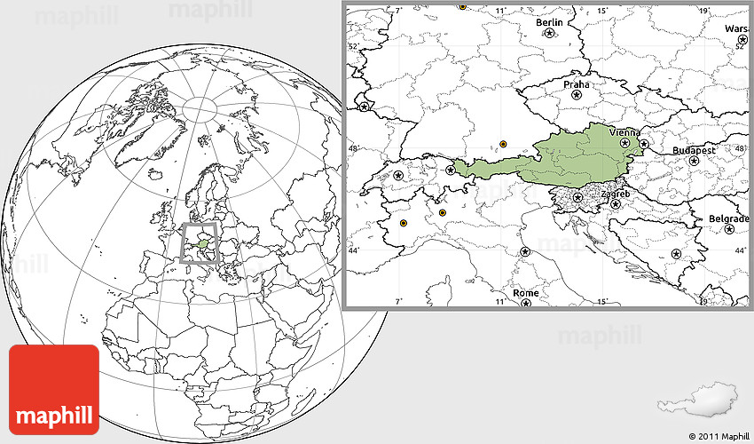 Use the buttons for Facebook, Twitter or Google+ to share a link to this Austria map. Maphill is the largest map gallery on the web. But the number of maps is certainly not the only reason to visit Maphill.