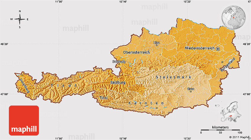 Use the buttons for Facebook, Twitter or Google+ to share a link to this Austria map. Maphill is the largest map gallery on the web. But the number of maps is certainly not the only reason to visit Maphill.