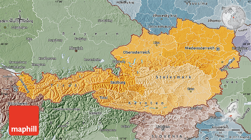 Maphill is a collection of map images. This political shades map of Austria is one of them. Click on the Detailed button under the image to switch to a more detailed map.