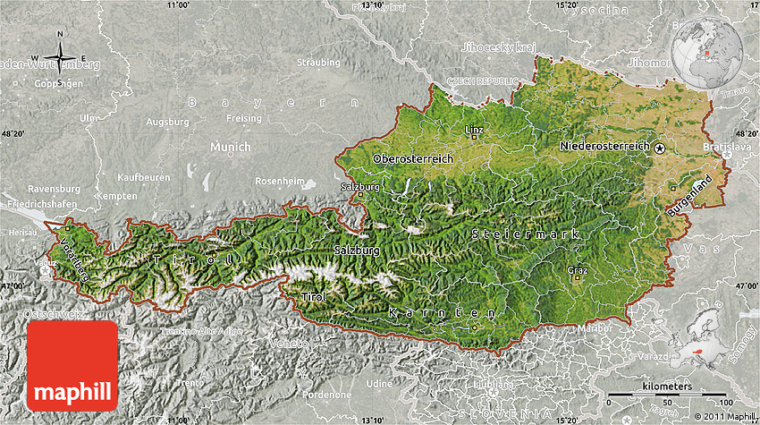 Maphill is a collection of map images. This satellite map of Austria is one of them. Click on the Detailed button under the image to switch to a more detailed map.