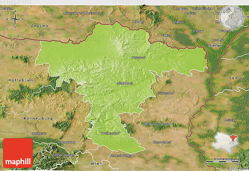 The 3D physical map represents one of several map types and styles available. Look at Mistelbach, Niederösterreich, Austria from different perspectives.