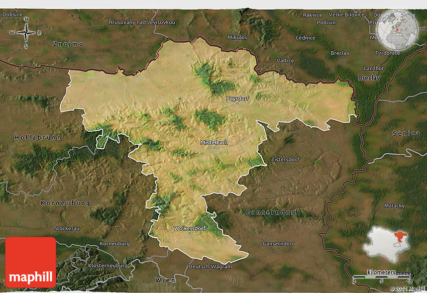 The 3D satellite map represents one of several map types and styles available. Look at Mistelbach, Niederösterreich, Austria from different perspectives.