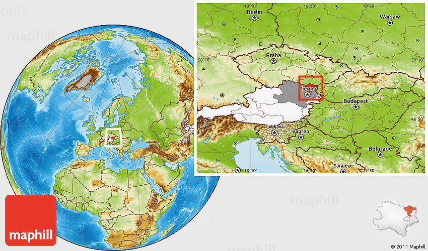 Maphill is a collection of map images. This image combines a physical map with the globe centered on Mistelbach. Use the buttons under the image to switch to different map types.