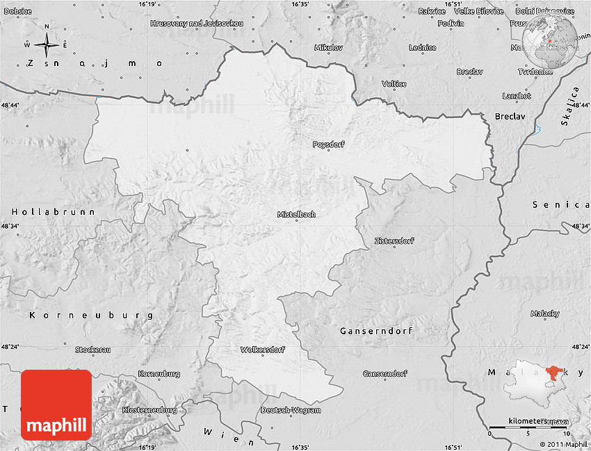 The flat silver style map represents one of several map types and styles available. Look at Mistelbach, Niederösterreich, Austria from different perspectives.