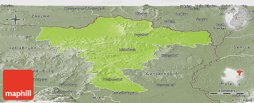 The panoramic physical map represents one of several map types and styles available. Look at Mistelbach, Niederösterreich, Austria from different perspectives.