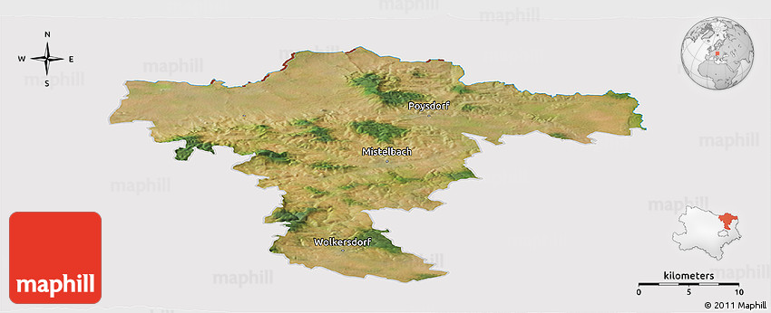 The panoramic satellite map represents one of several map types and styles available. Look at Mistelbach, Niederösterreich, Austria from different perspectives.