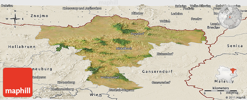 The panoramic satellite map represents one of several map types and styles available. Look at Mistelbach, Niederösterreich, Austria from different perspectives.