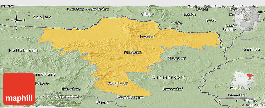 The panoramic savanna style map represents one of several map types and styles available. Look at Mistelbach, Niederösterreich, Austria from different perspectives.