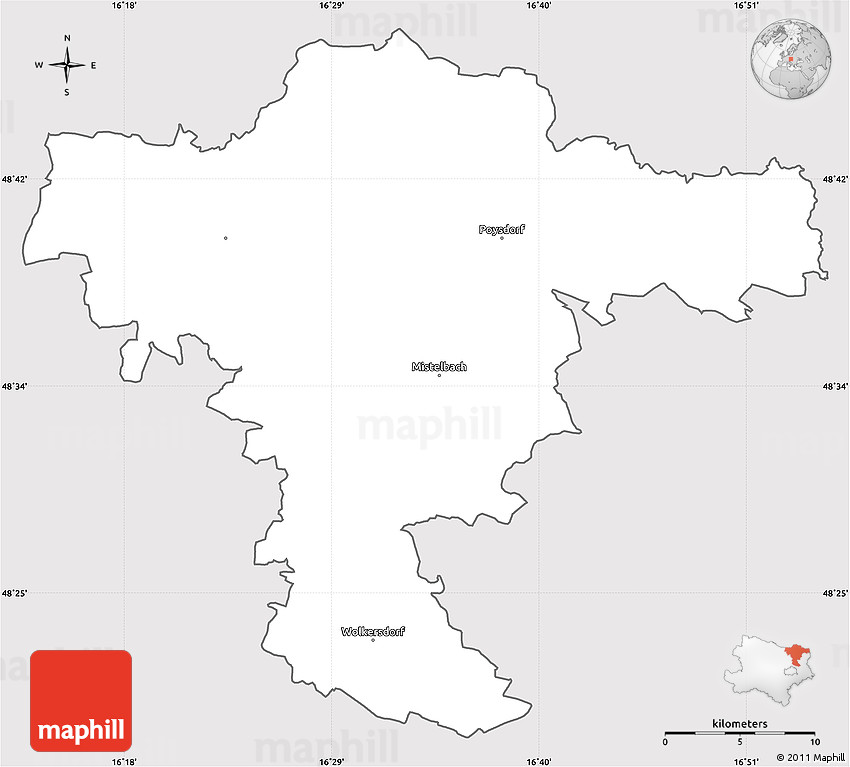 The simple silver style outline map represents one of several map types and styles available. Look at Mistelbach, Niederösterreich, Austria from different perspectives.