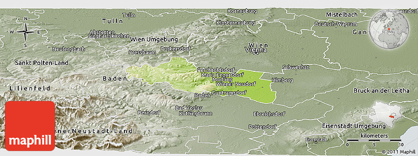 The panoramic physical map represents one of several map types and styles available. Look at Modling, Niederösterreich, Austria from different perspectives.