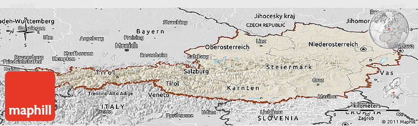 The value of Maphill lies in the possibility to look at the same area from several perspectives. Maphill presents the map of Austria in a wide variety of map types and styles.