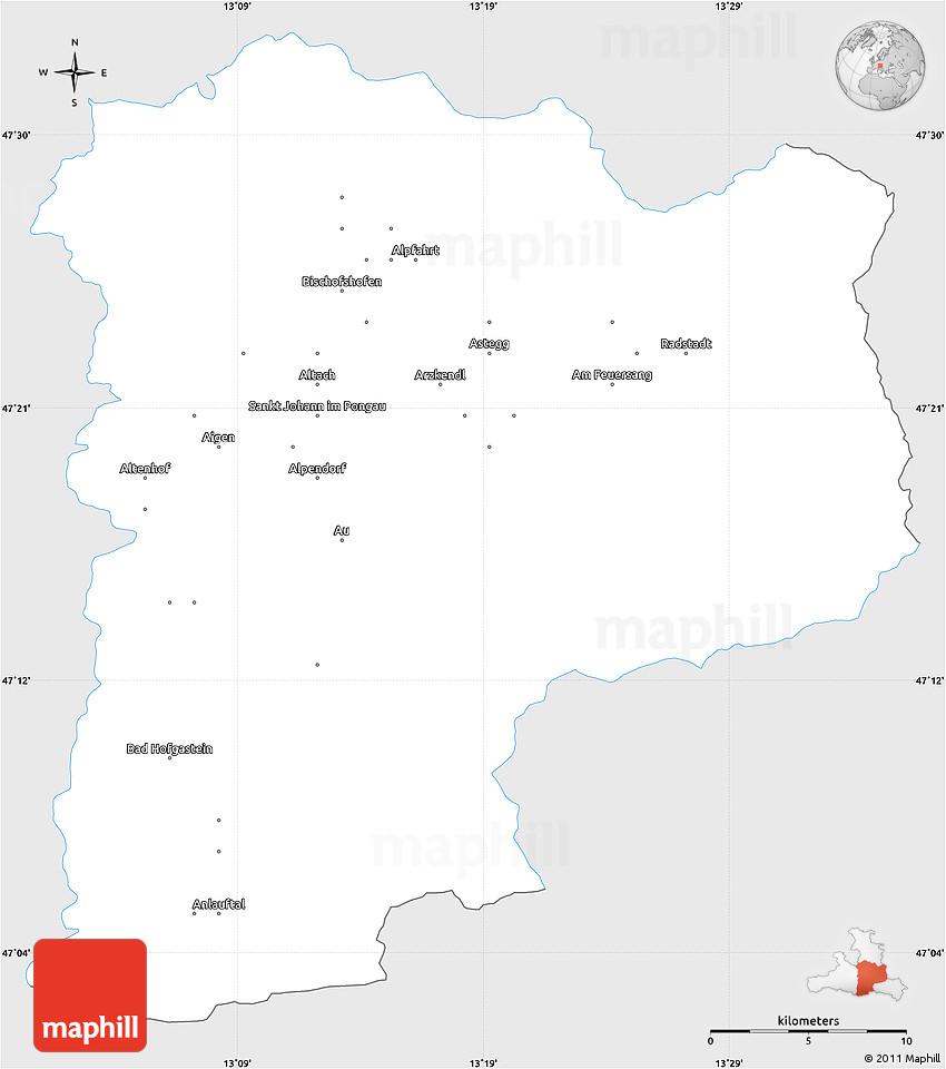 The simple silver style outline map represents one of several map types and styles available. Look at Sankt Johann im Pongau, Salzburg, Austria from different perspectives.