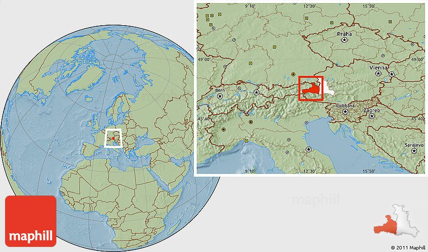 Maphill is a collection of map images. This image combines a savanna style map with the globe centered on Zell am See. Use the buttons under the image to switch to different map types.