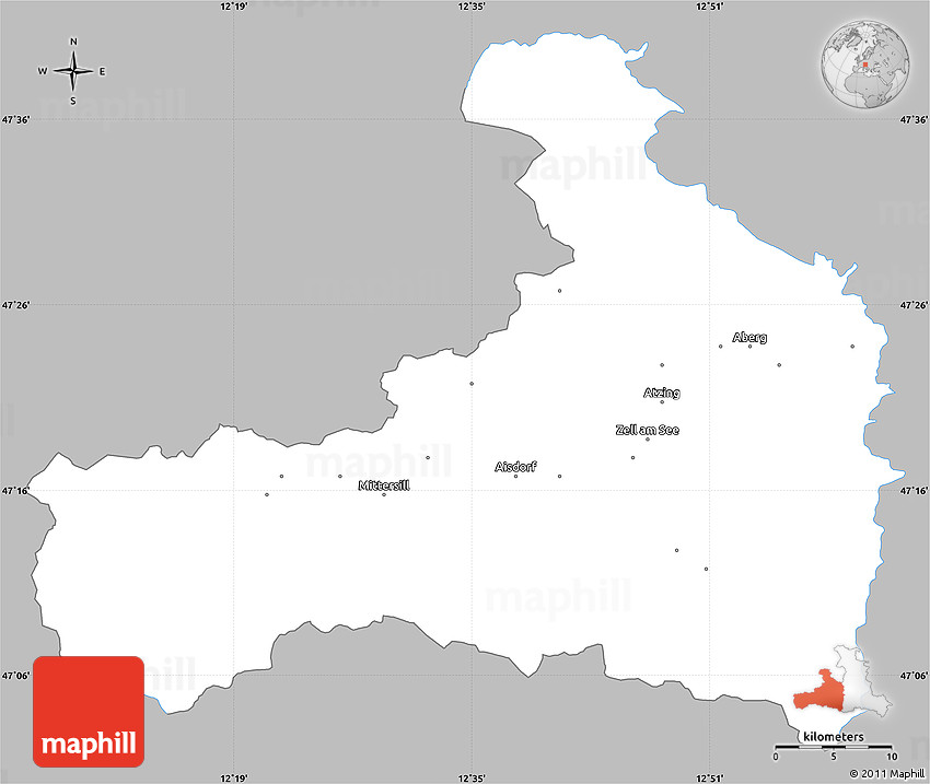 The simple gray outline map represents one of several map types and styles available. Look at Zell am See, Salzburg, Austria from different perspectives.