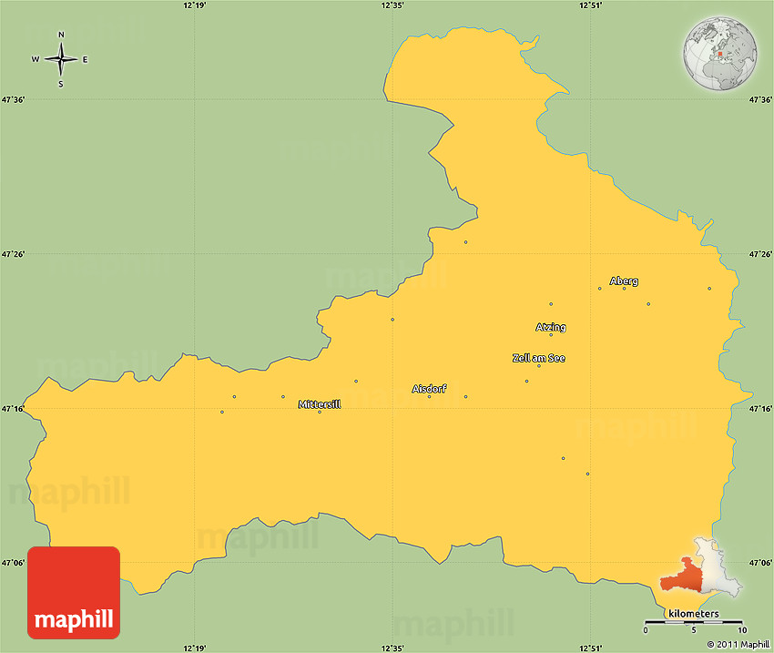 The simple savanna style outline map represents one of several map types and styles available. Look at Zell am See, Salzburg, Austria from different perspectives.