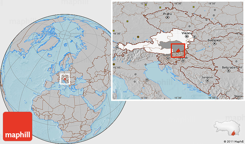 Maphill is a collection of map images. This image combines a gray map with the globe centered on Leibnitz. Use the buttons under the image to switch to different map types.