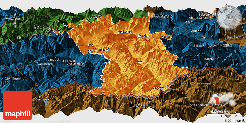 The panoramic political map represents one of several map types and styles available. Look at Imst, Tirol, Austria from different perspectives.