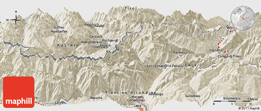 Sure, this shaded relief panoramic map is nice. But there is good chance you will like other map styles even more. Select another style in the above table. See Klamm and Tirol from a different view.