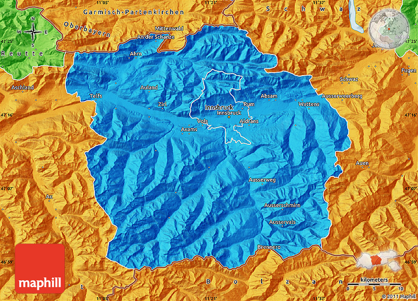Each map style has its advantages. No map type is the best. The best is that Maphill lets you look at Innsbruck-Land from many different perspectives.