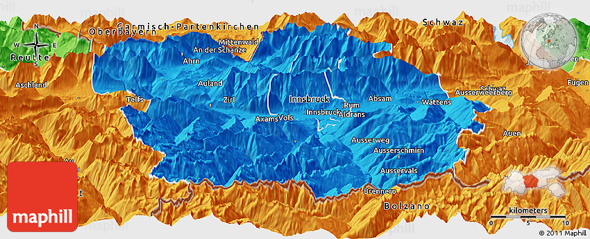Each map style has its advantages. No map type is the best. The best is that Maphill lets you look at Innsbruck-Land from many different perspectives.