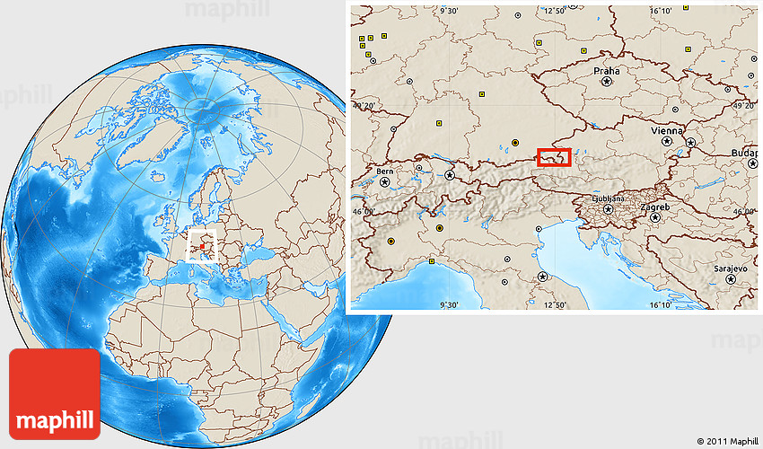 Maphill is a collection of map images. This image combines a shaded relief map with the globe centered on Gasteig. Use the buttons under the image to switch to different map types.