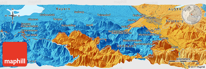 The panoramic political map represents one of many map types and styles available. Look at Gasteig, Kitzbuhel, Tirol, Austria from different perspectives.