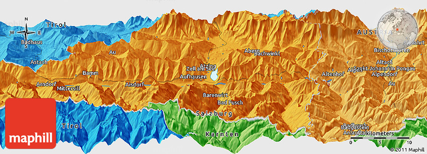 The panoramic political map represents one of many map types and styles available. Look at Griesenau, Kitzbuhel, Tirol, Austria from different perspectives.