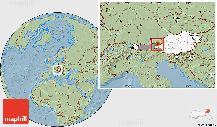 Maphill is a collection of map images. This image combines a savanna style map with the globe centered on Kitzbuhel. Use the buttons under the image to switch to different map types.