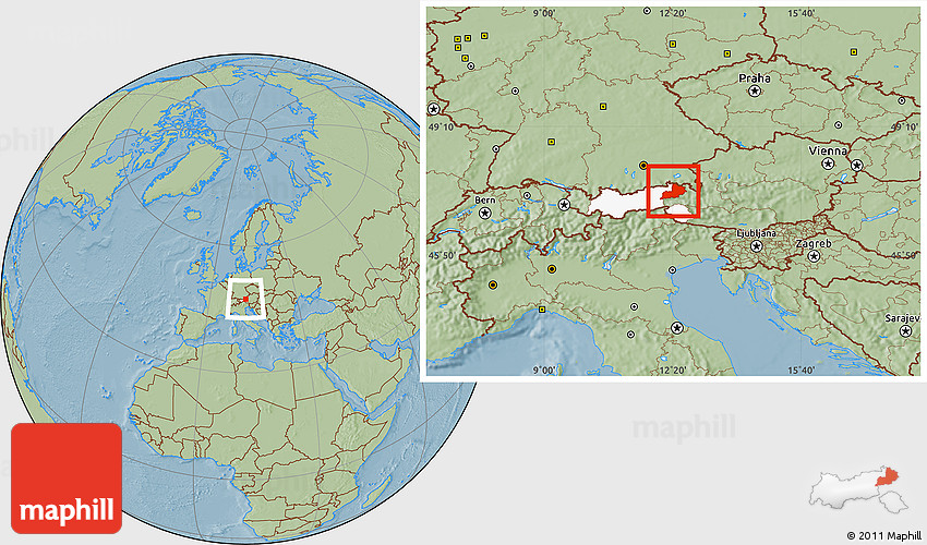 Maphill is a collection of map images. This image combines a savanna style map with the globe centered on Kitzbuhel. Use the buttons under the image to switch to different map types.