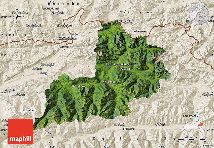 Each map type offers different information and each map style is designed for a different purpose. Read about the styles and map projection used in the above map (Satellite Map of Kitzbuhel, shaded relief outside).