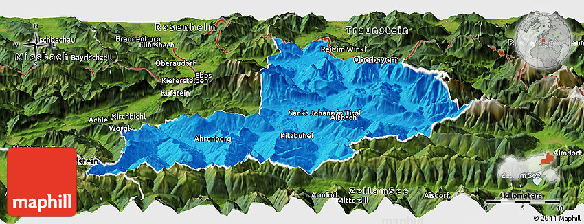 The panoramic political map represents one of several map types and styles available. Look at Kitzbuhel, Tirol, Austria from different perspectives.