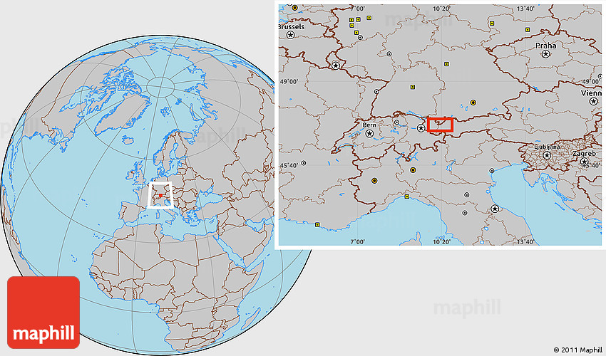 Maphill is a collection of map images. This image combines a gray map with the globe centered on Piller. Use the buttons under the image to switch to different map types.