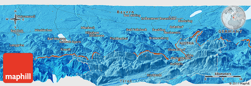 The panoramic political map represents one of many map types and styles available. Look at Außersteinberg, Schwaz, Tirol, Austria from different perspectives.