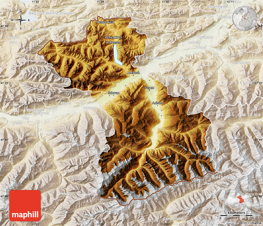 Each map style has its advantages. No map type is the best. The best is that Maphill lets you look at Schwaz from many different perspectives.