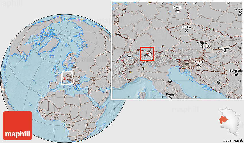 Maphill is a collection of map images. This image combines a gray map with the globe centered on Feldkirch. Use the buttons under the image to switch to different map types.