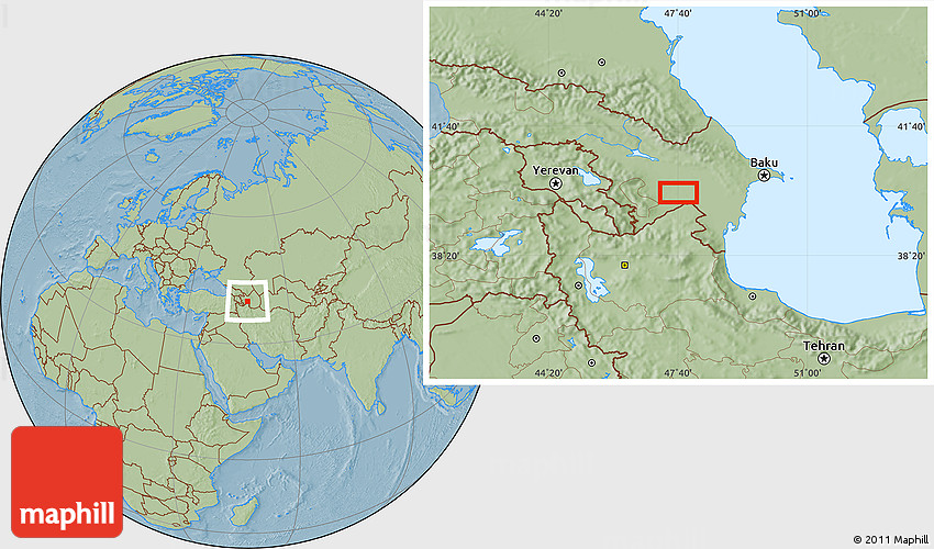 Maphill is a collection of map images. This image combines a savanna style map with the globe centered on Ağcabǝdi. Use the buttons under the image to switch to different map types.
